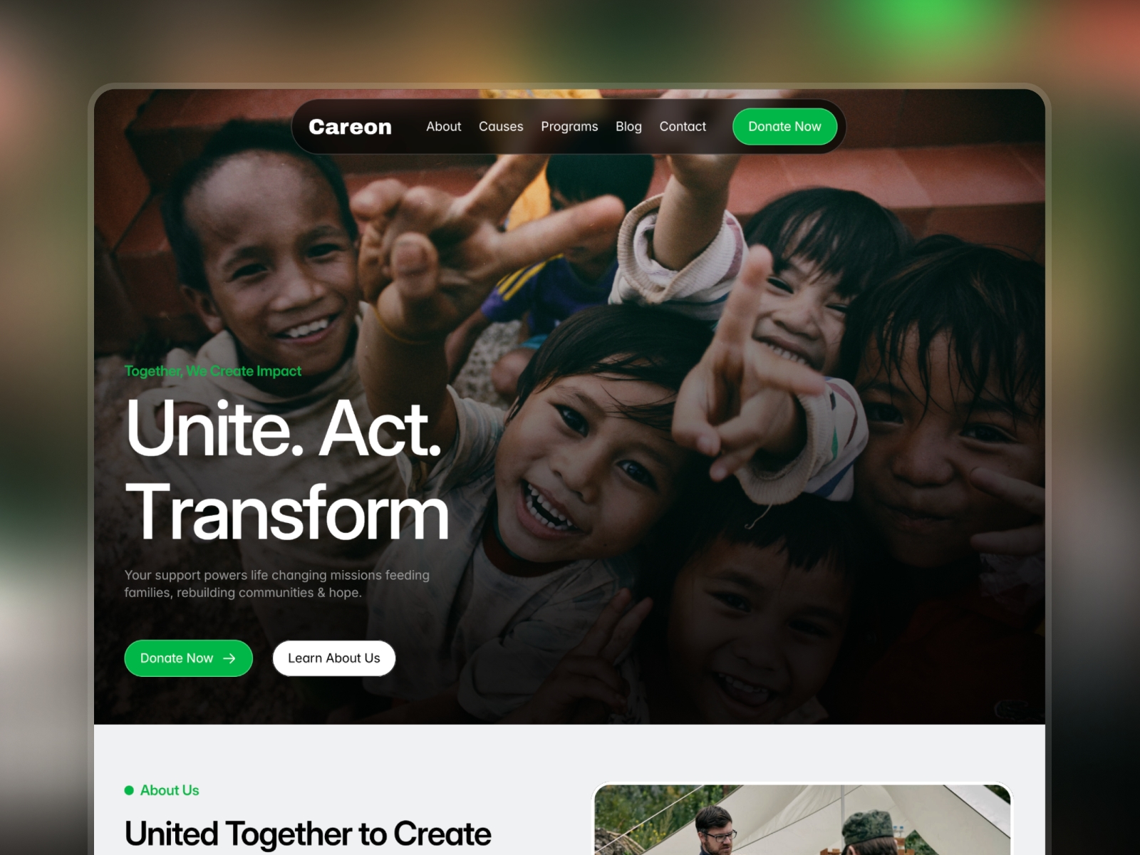 Careon is a purpose-driven Framer template designed to empower non-profits, charities, and social impact organizations to create meaningful change online. With its warm, compassionate design and easy customization, Careon helps you share your mission, inspire supporters, and raise funds effortlessly.