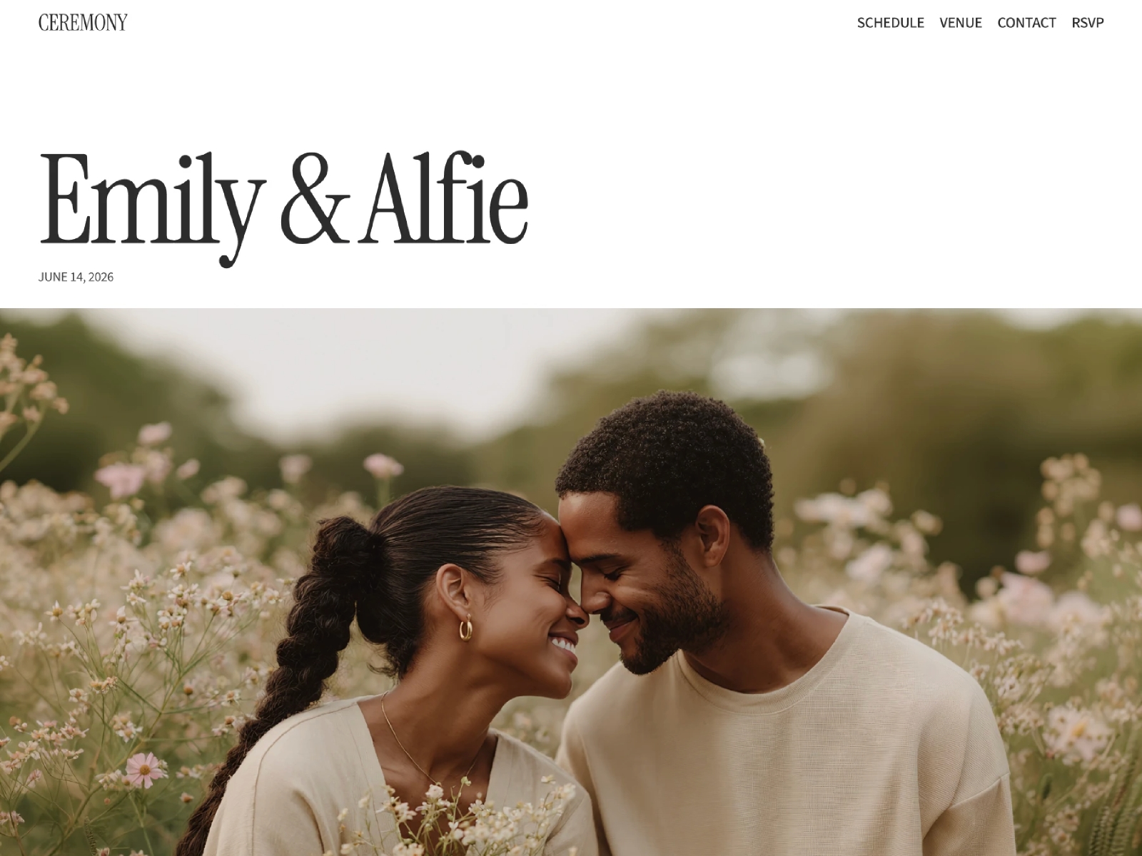 Create a stunning wedding website in minutes. Ceremony is an elegant wedding template that is very easy to work with. Add all of your details to make your own website and share it with your guests.
