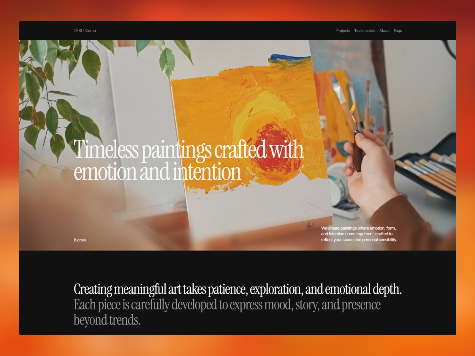 A refined one-page portfolio template for painters and visual artists, designed to showcase artwork with clarity, emotion, and balance.
