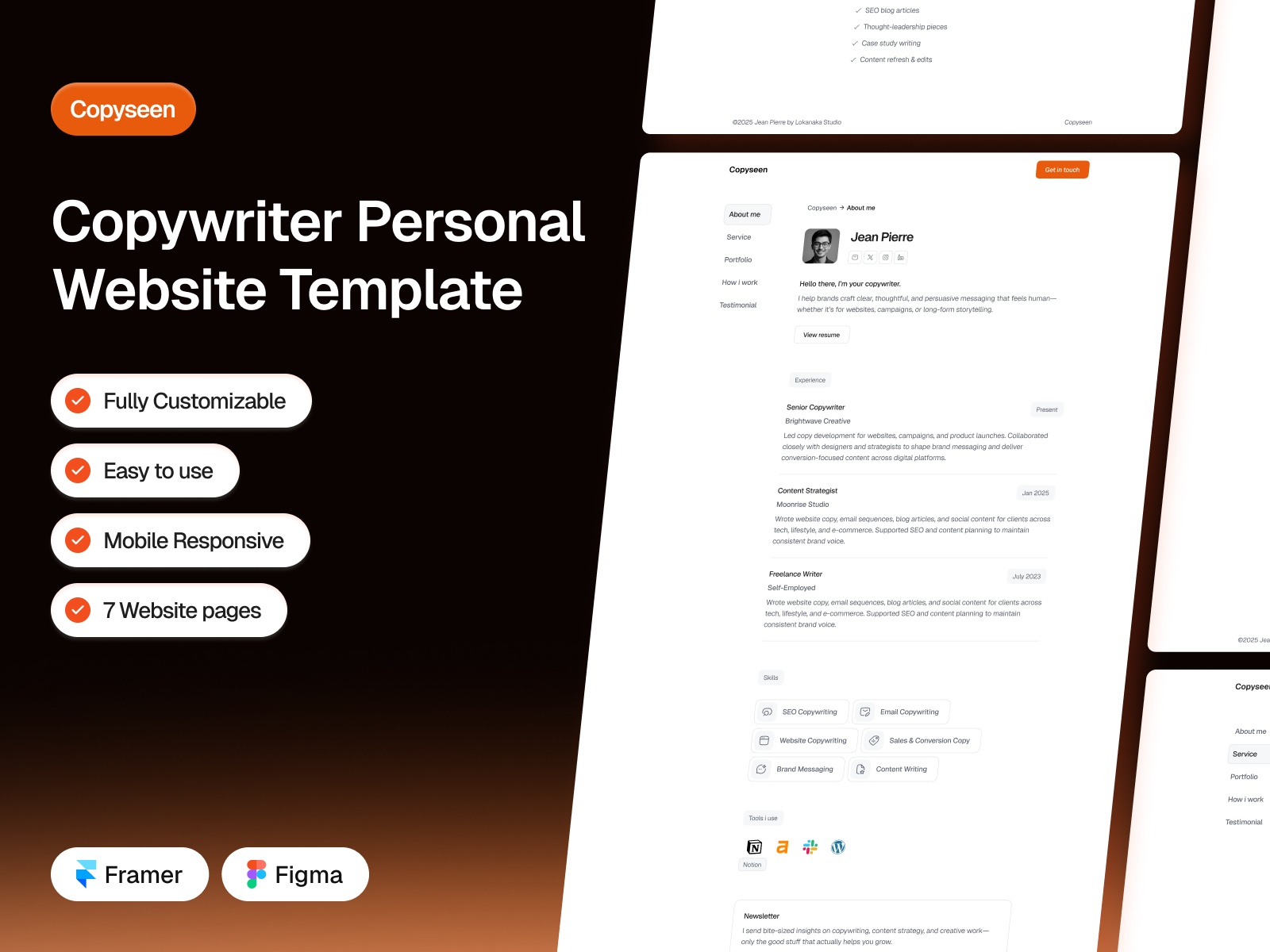 Copyseen is a modern portfolio template built specifically for copywriters who want to showcase their work clearly, professionally, and with personality. It helps you present your services, case studies, and process in a way that builds trust and converts visitors into clients.