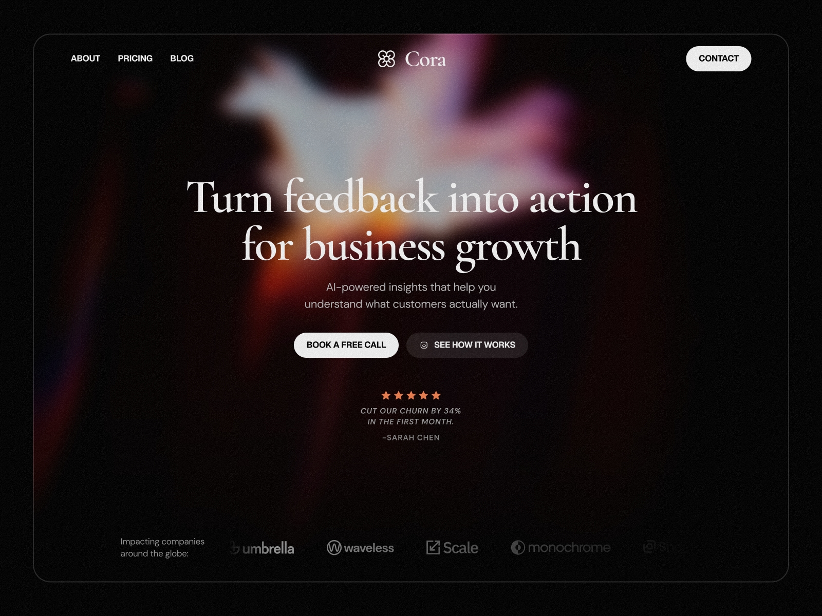Cora is a premium Framer template built for AI-powered customer insights platforms that want to look trustworthy, data-driven, and attract businesses ready to understand their customers.