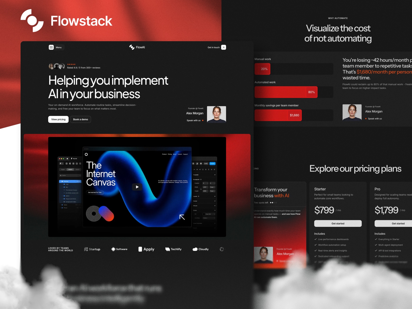 Every section is crafted with intention: strong hero messaging, persuasive feature blocks, dynamic workflow imagery, and compelling case study layouts. Whether you're showcasing automation systems, AI-powered tools, or productized services, Flowstack gives you the structure and visual clarity to look like a top-tier tech brand.