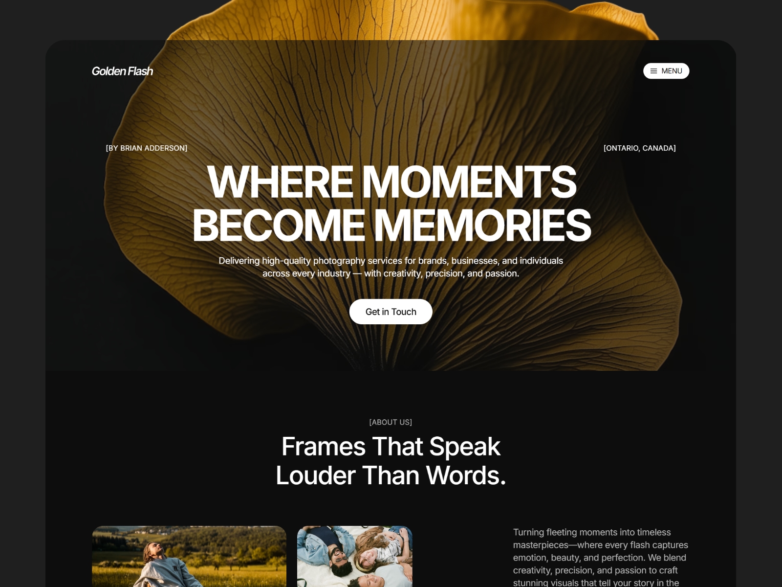 GoldenFlash is a modern and captivating Framer template designed for photographers, studios, and creative agencies who want to present their portfolio with elegance and impact.