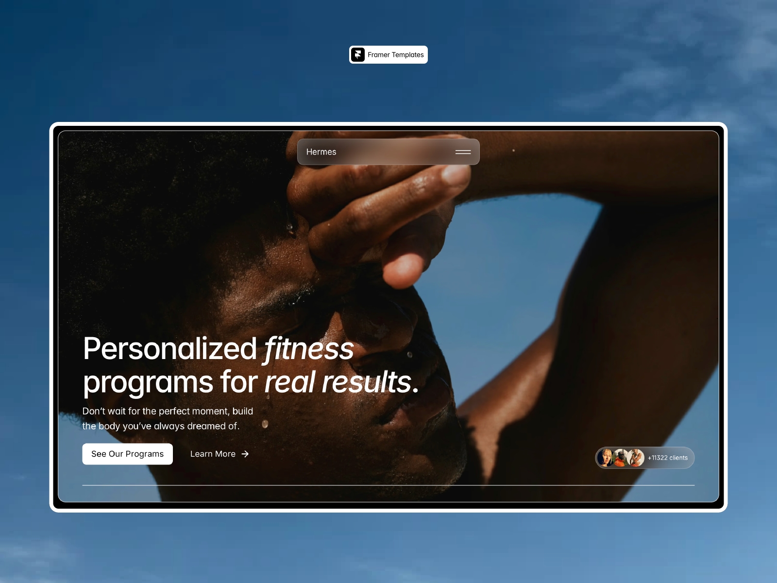The Hermes Framer template is built for fitness coaches and gyms who want to showcase programs, share success stories, and connect with clients through a clean, modern, and fully customizable design.