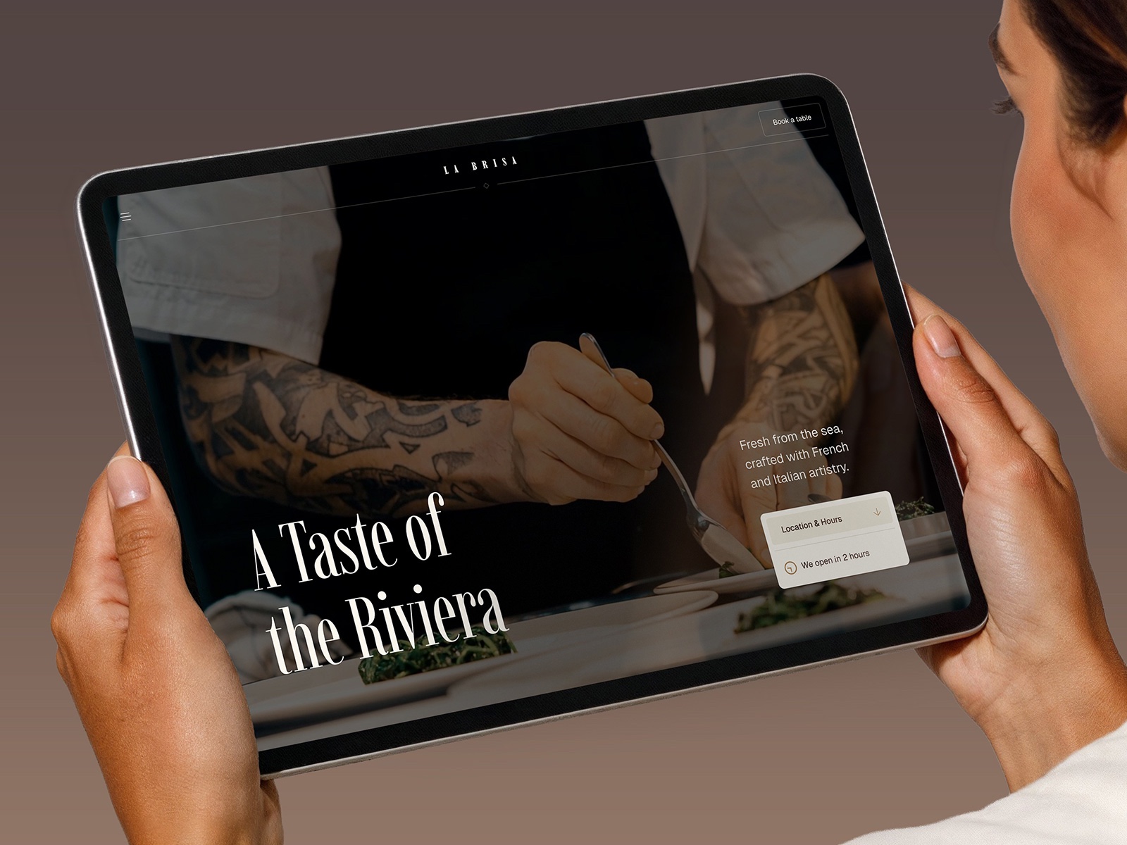 Two standout components make La Brisa truly unique: an Opening Hours display with automatic open/closed status, and a Reservation Stepper that lets visitors select the number of guests — perfect for restaurants where seating is key.