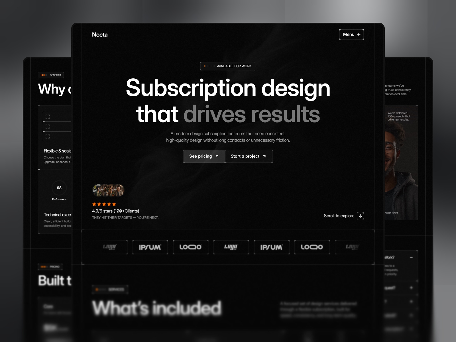 Nocta is a premium Framer template built for design subscription services that need a confident, conversion-focused online presence from day one.