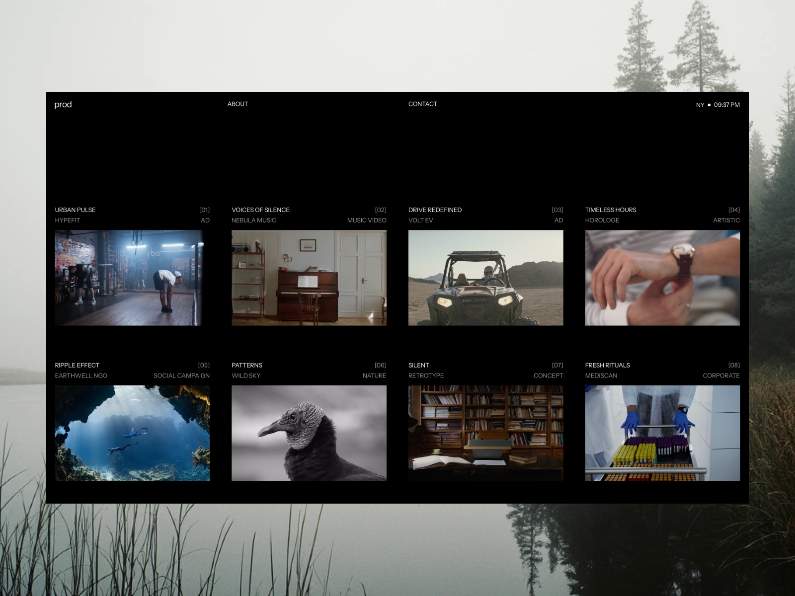 Minimal videography and production portfolio template for creators and agencies. Showcase projects in a clean grid, present work with immersive video pages, and easily customize everything for a fast, flexible, cinematic feel.