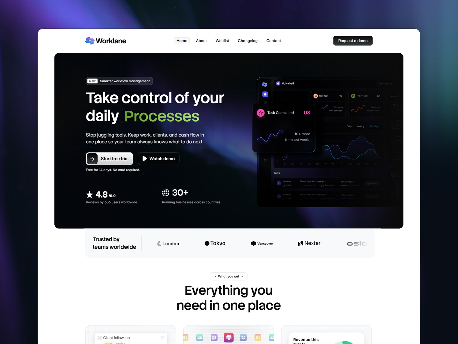 A modern SaaS template built for workflow management and productivity tools. Designed to adapt to any software product - business platforms, automation software, scalable SaaS solutions, productivity software. From early-stage startups to scalable softwares.